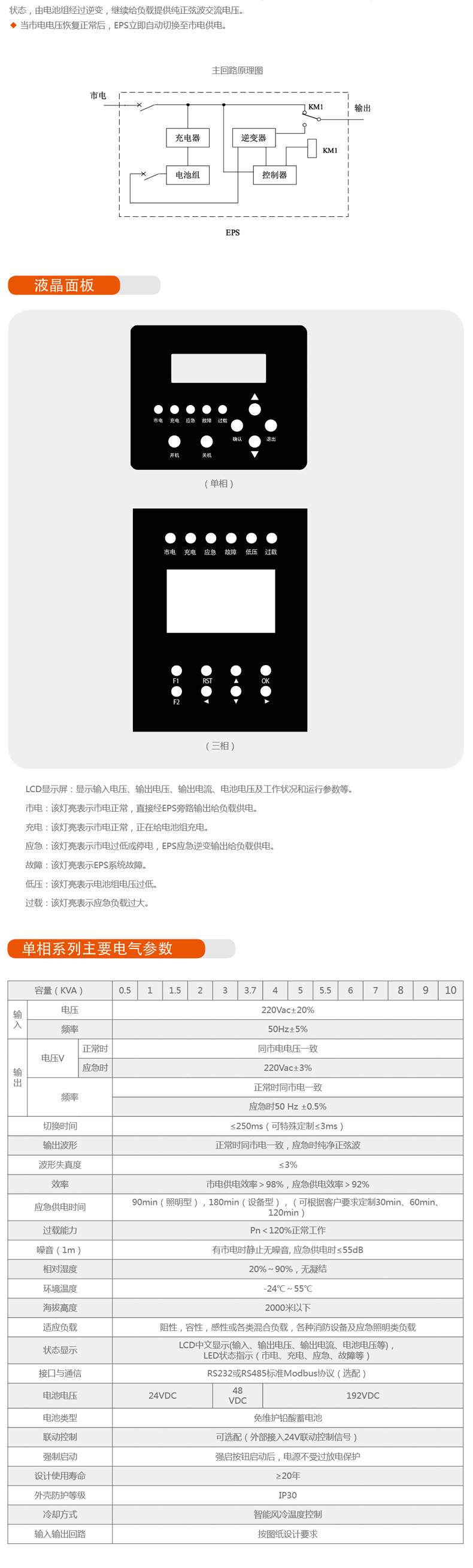 EPS:在電網(wǎng)正常時(shí)處于睡眠狀態(tài),耗電不足0.1%,無電網(wǎng)供電時(shí),其效率92%以上